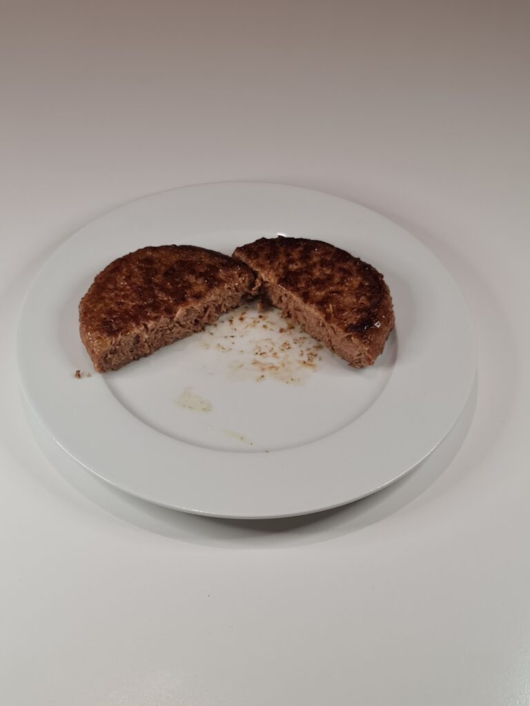 Die 113g schweren Patties imitieren mit der braunen Farbe bereits in der Packung einen gegarten Burger. In der Pfanne bekommt der Burger optisch dann noch den Finish und ist damit einem echten Fleischburger extrem nahe. Der Geschmack ist leicht fleischig und bringt eine starke rauchige Note „vom Grill“ mit. Ob man dies mag oder nicht ist im Endeffekt Geschmacksache – wir mögen das sehr und finden den Burger damit definitiv interessant. Unsicher sind wir uns, ob dies in der neuen Rezeptur angepasst wurde, da die Reviews zum Burger bei Coop früher bezüglich Geschmack und Eigengeschmack eher kritisch waren.